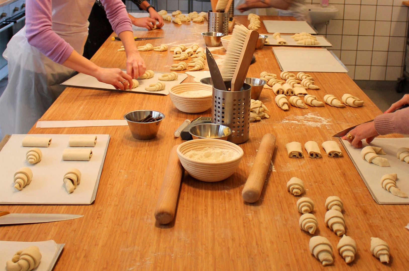 Frédéric vores franske konditorchef med mange års erfaring vil guide Jer igennem alle de forskellige bageteknikker som at folde og rulle dejen, for at lave ægte franske smørbagte croissanter. Der bliver fremstillet i alt 3 forskellige slags croissanter.