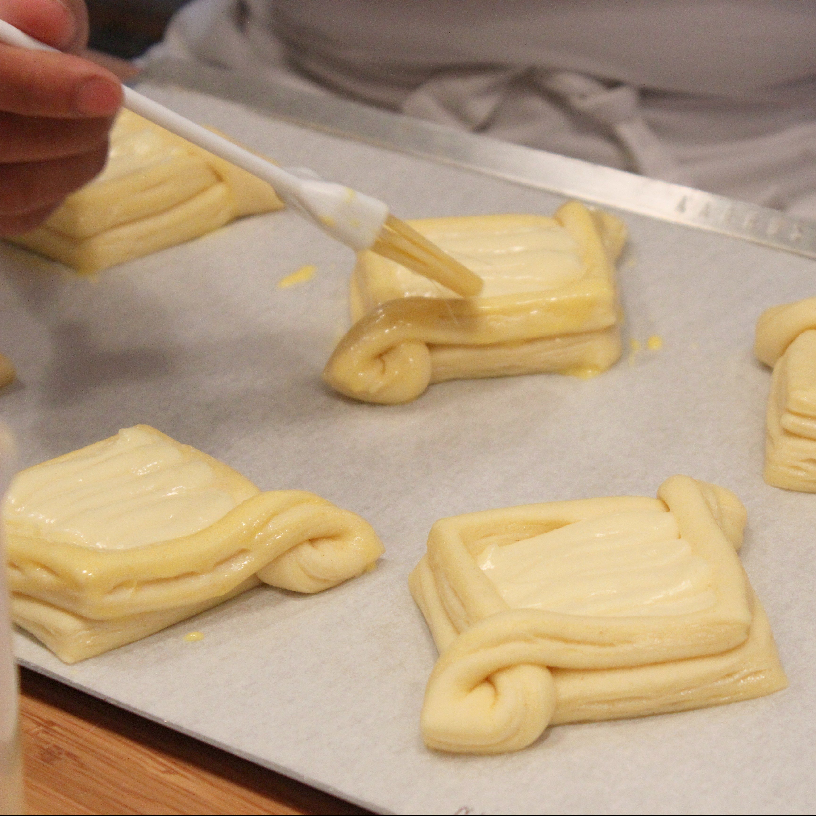Hele processen med at lave wienerbrød er en udfordring og er tidskrævende. Vi har derfor forberedt en dej, så vi har tid til at lave, bage og smage på wienerbrødene. Mens de hæver, vil vi så lave en dej fra bunden af, så I vil stadig gennemgå alle faser i løbet af kurset.